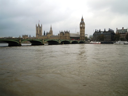 対岸には、ビッグ・ベン(国会議事堂)の巨大な時計が見えて、壮観な眺め!