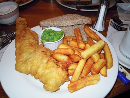 もうひとつの英国名物、「フィッシュ・アンド・チップス」で昼食・・・