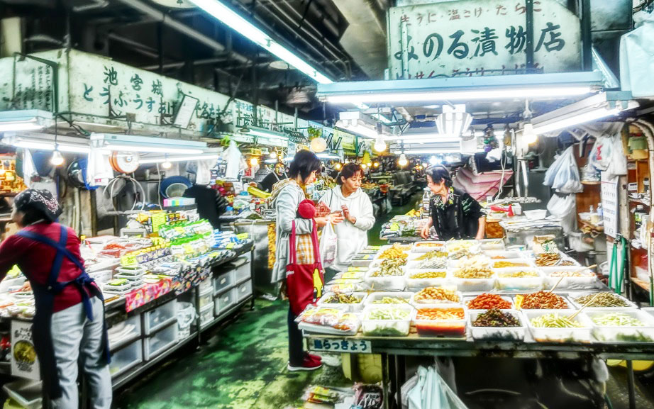 特に人気があるのは、「漬物」や「お魚」のお店が集まっている、このあたりから向こう。