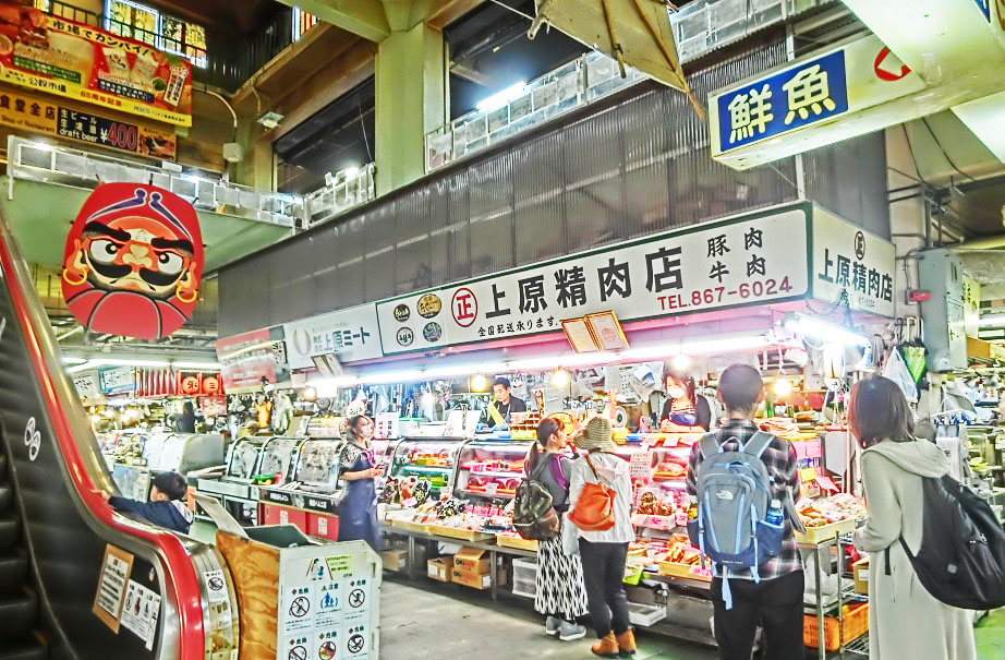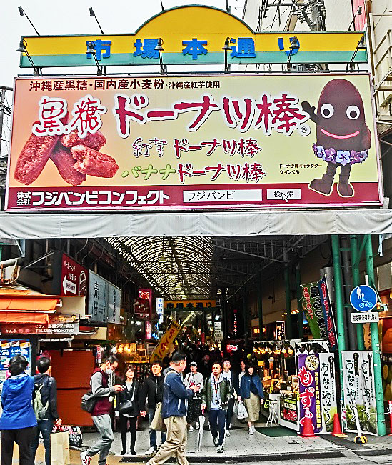 繁華街の中心である、「牧志(まきし)公設市場」が、近づいてきましたよ。