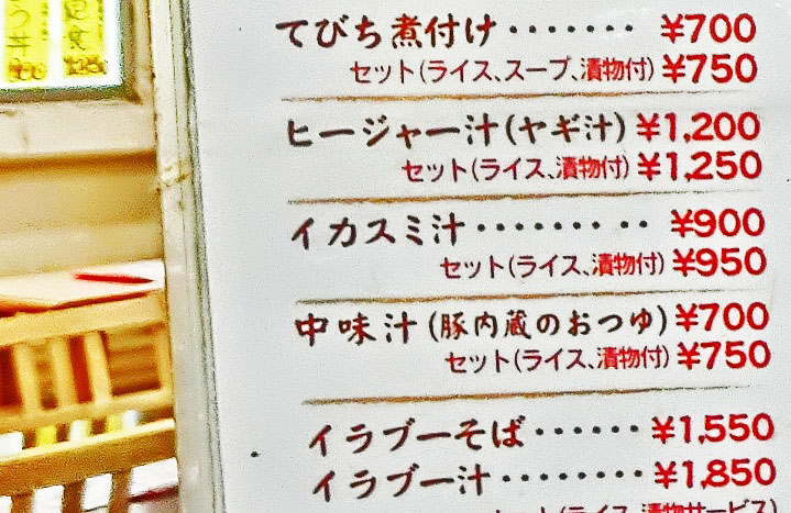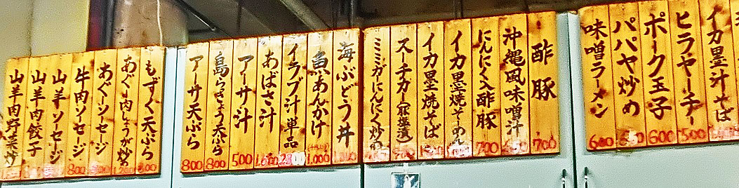 「山羊(ヤギ)肉」はわかるとしても・・・「あぐー」に、「アーサ」に、「あばさ」に、「イラブ」に、「ミミガー」に、「スーチカー」に、「ヒラヤーチー」にとなると、私の頭には、何も浮かんでまいりません・・・(笑)