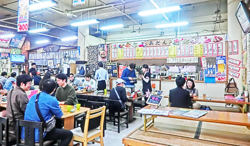 2階に上がると、昭和の雰囲気満点の、飲食店街が広がっていますよ。