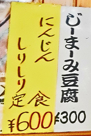 う〜ん・・・「にんじん」はわかるのですが、「しりしり定食」とは、いったい??