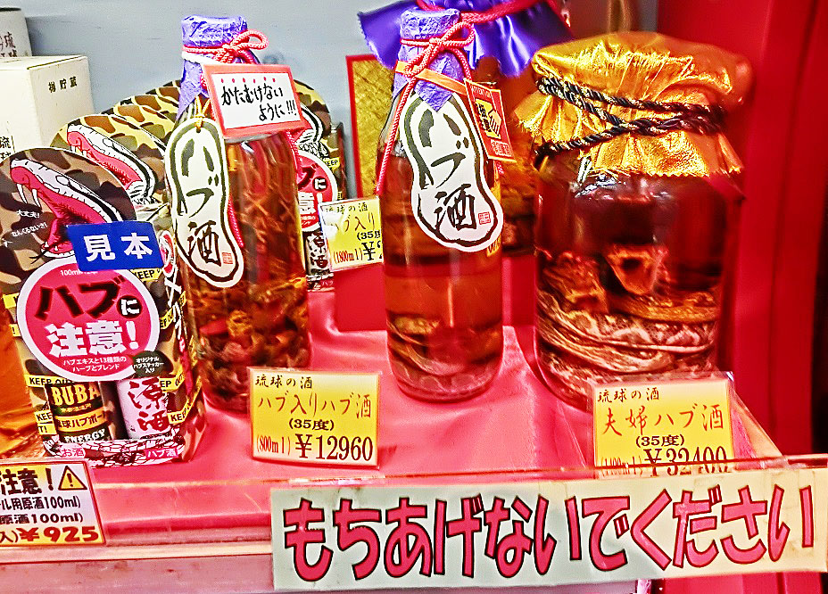 ハブ酒のビンを、思わず持ち上げて、揺さぶってしまう人たちがいるのですね・・・