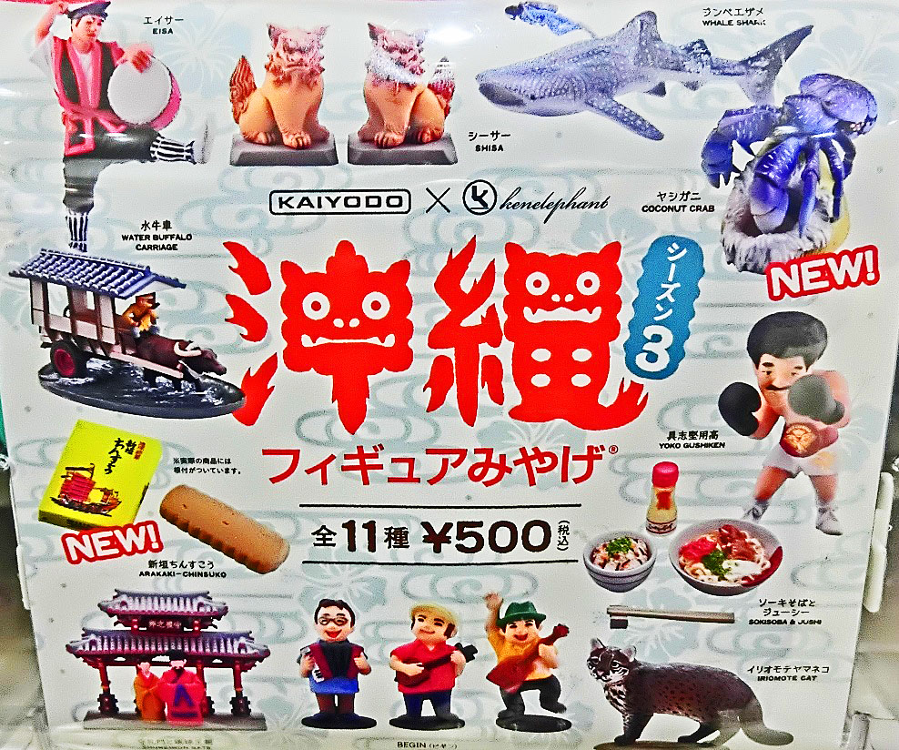 目についたのが、沖縄をテーマにした、「ガチャガチャ」装置で買うお土産フィギュア・・・