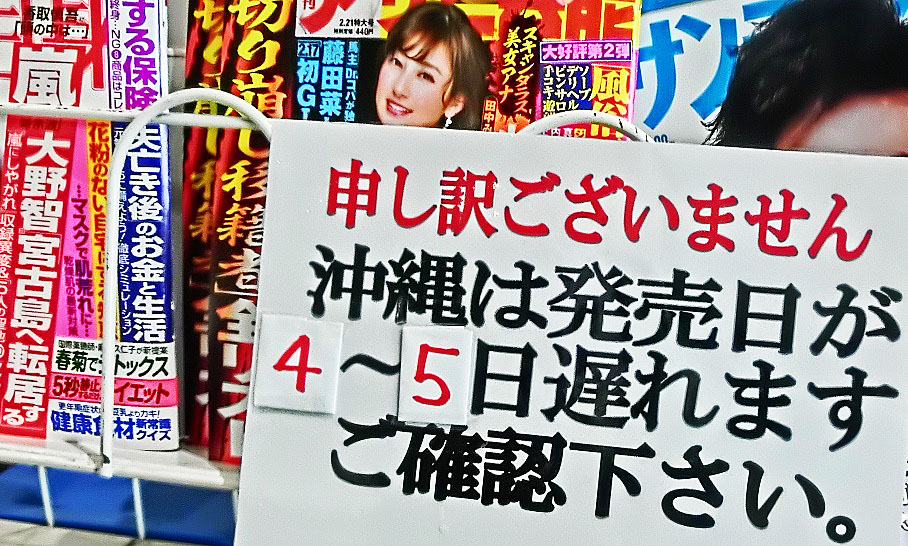 「沖縄は、発売日が4〜5日遅れます」とのお詫びが!!