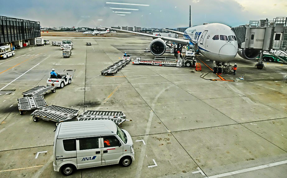 いま乗ってきた機体から、私が預けた荷物が、今度は運び出されていますよ。