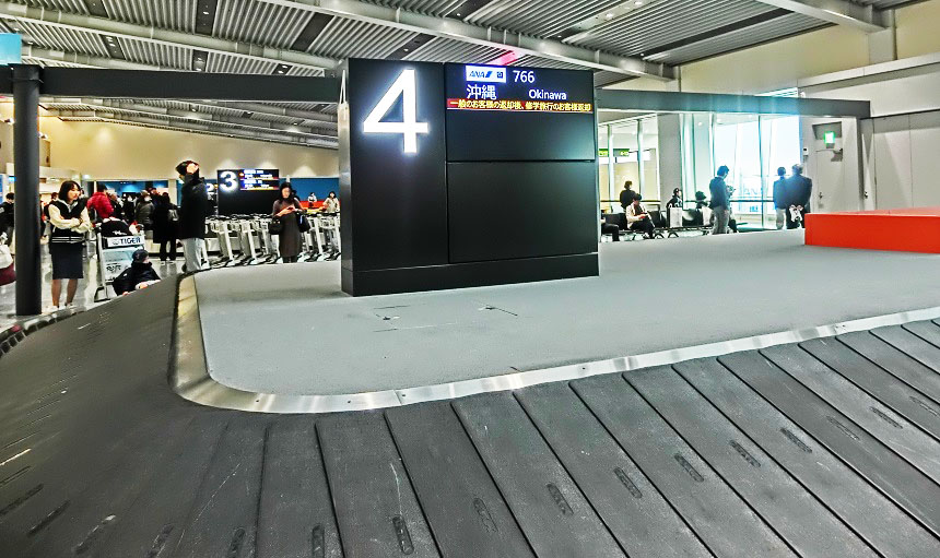 手荷物受取所で、自分の荷物が出てくるのを待ちましょう。