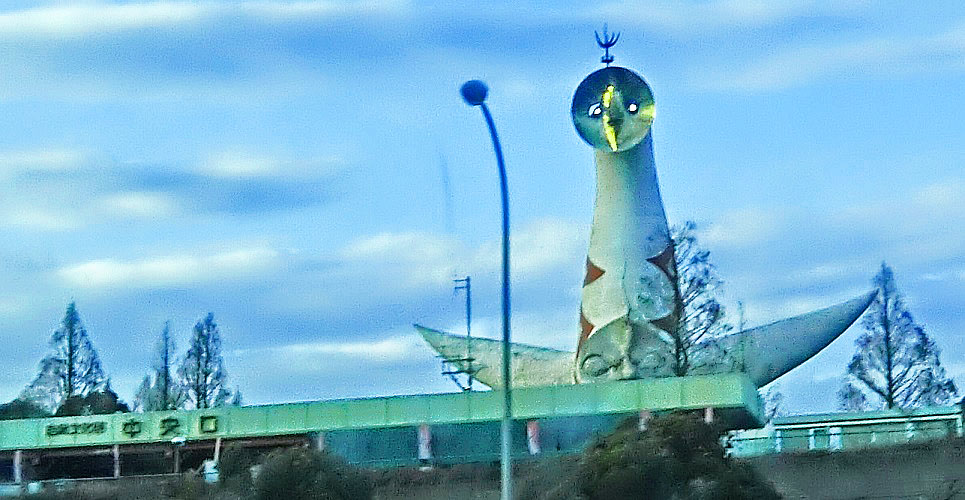 もしや、今でも「万博記念公園」に立っている、大阪万国博覧会(1970年開催)のシンボルタワー、「太陽の塔」の雄姿では!?