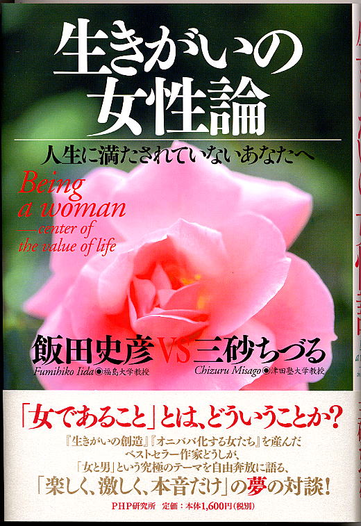 特に、本書での私は、専門家の三砂教授をゲストにお迎えしてホスト役に徹し、「女性からみると、ホントに頭の悪いダメ男」という役柄を演じていますので、攻撃的女性論者からみれば、「飯田ってやつは、ホントにバカな男ねぇ」と、格好の餌食になること間違いなし(笑)。その種の方々は、他人をバカにすることによって自分のアイデンティティを保っていらっしゃるだけなので、好きなだけバカにさせてあげれば良いのであって、いちいち反応するだけ時間の無駄というもの。その程度のことは、これまでの「生きがい論」で散々な目にあってきた私にとって、痛くも痒くもありません。読者の皆様も、その種の人々を見たら、どうか大きな愛情で包み込んで、「あらまあ、ご苦労さまねぇ」と、好きなようにさせてあげてくださいね。