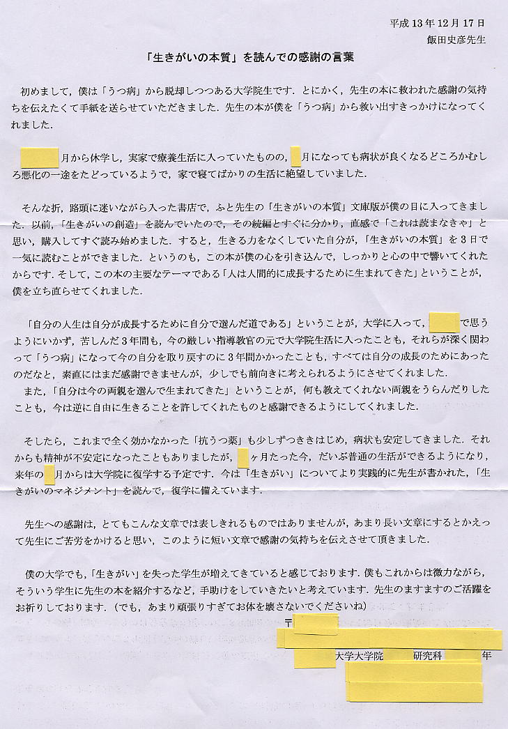そのような徹底した目的意識を持つ媒体であることを重々認識しながらも、この評論家の方が自ら、「だからこそ私は、本誌の読者層に、貴著を読んで欲しいと思っております」とおっしゃってくださることに、私は深い敬意を表し、心から感服するのです。ふだん、大学教官の本などに目もくれないであろう方々に対して、だからこそ、ぜひとも『生きがいの本質』を薦めたいとおっしゃってくださること・・・・・・私にとって、これほど光栄なお言葉があるでしょうか。