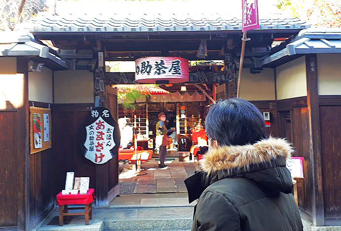そして、2枚目は・・・「わらび餅」の元祖として知られる、「文之助茶屋」の前を通り過ぎながら、店員のオバチャンと目が合ってしまい、気まずい思いをしている私の後頭部です(笑)。