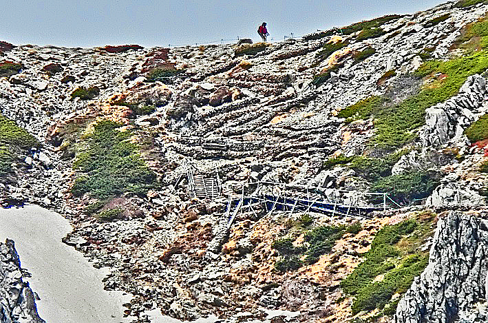 大海原を満喫したので、この急な狭い階段を、ギリギリの態勢で通過しながら(笑)、そろそろと降りていきましょうか・・・
