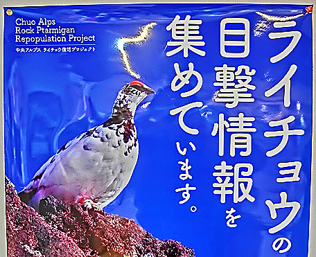 雷鳥を見かけた御方は、中央アルプスに点在する山小屋まで、ご連絡を。