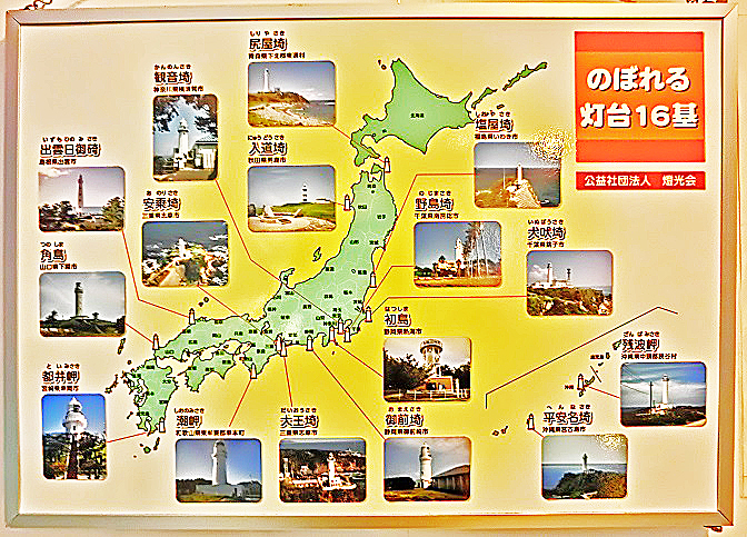 もちろん、灯台巡りが大好きな私は、これらのうち、「尻屋埼」「入道埼」「塩屋埼」「犬吠埼」「観音埼」「御前埼」「大王埼」「安乗埼」「潮岬」「出雲日御碕」「都井岬」「残波岬」「平安名埼」の13基に、すでに登ったことがありますよ。残るは、「野島埼」「初島」「角島」の3基なので、今生のうちには(笑)、全基制覇を狙いたいですね!!