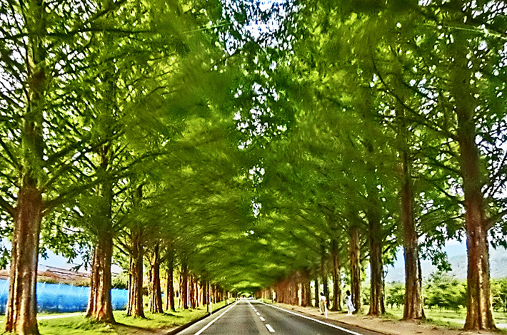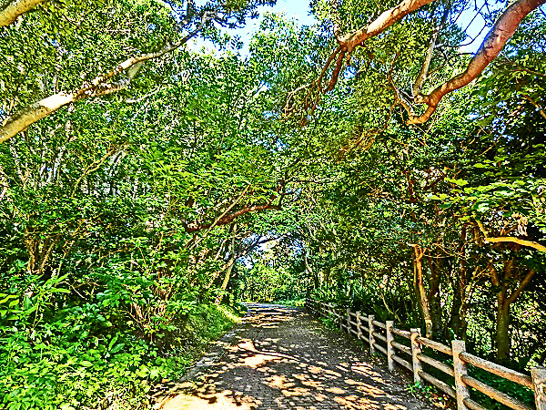 ちょうど近くを通ったので、数キロほど国道をそれて南下し、「ある場所」の駐車場に車を停めて、熱帯植物が生い茂る道を、さらに南へ・・・