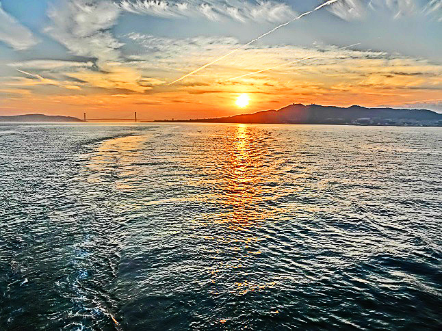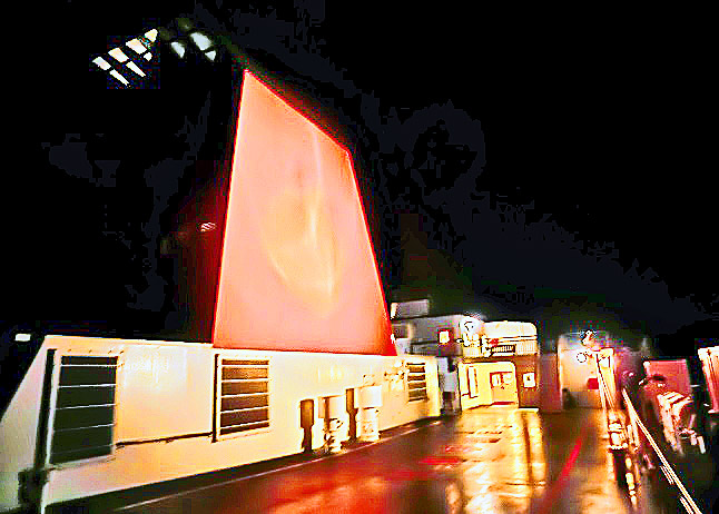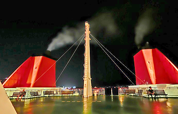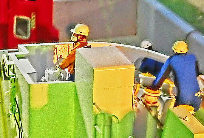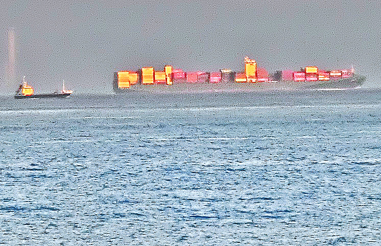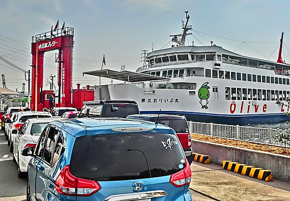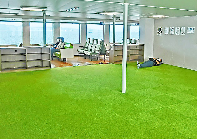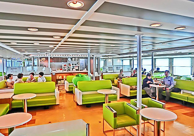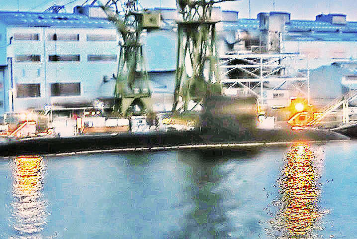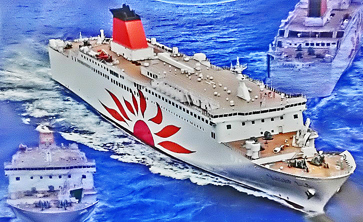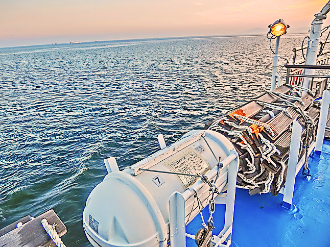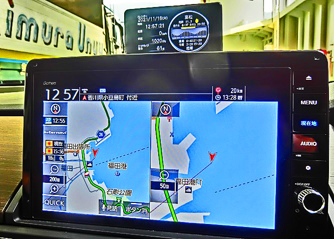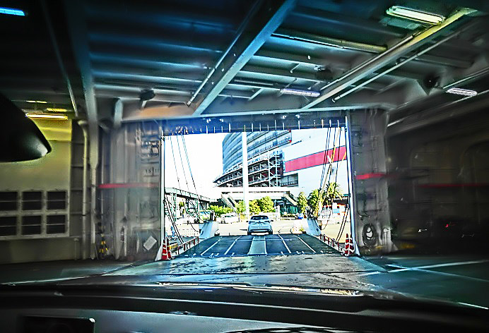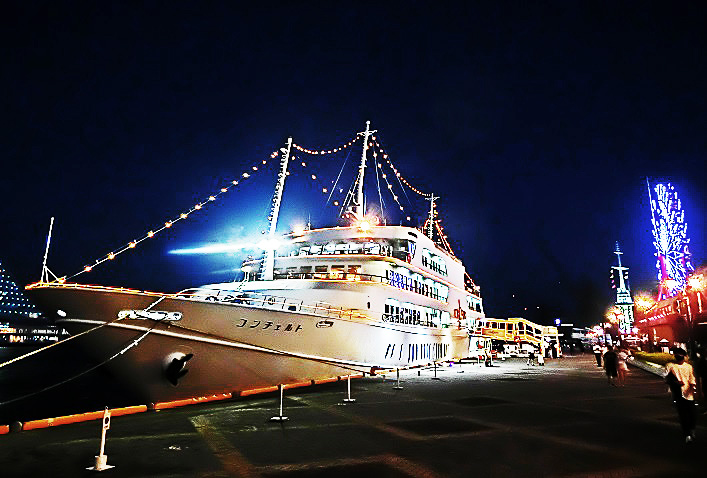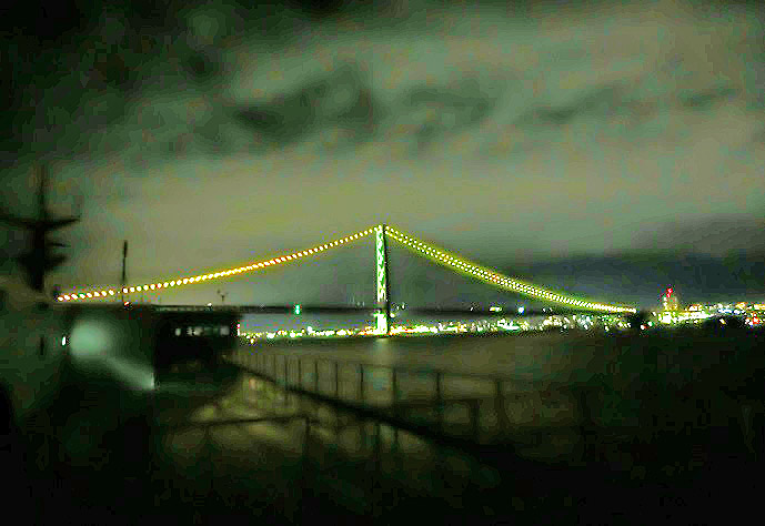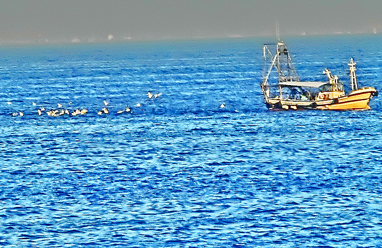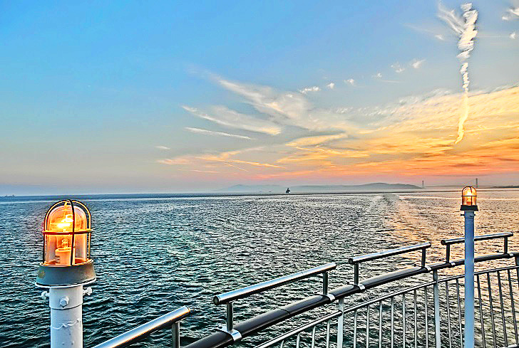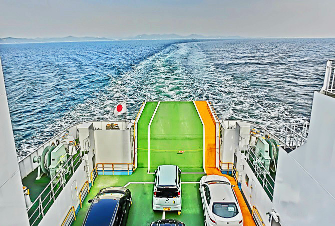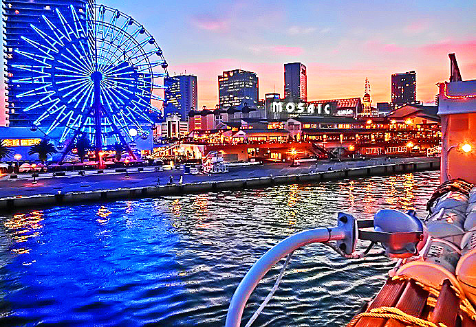 はるか向こうで、巨大なタンカーやマグロ漁船風の船舶たちが、行き交っていますよ。