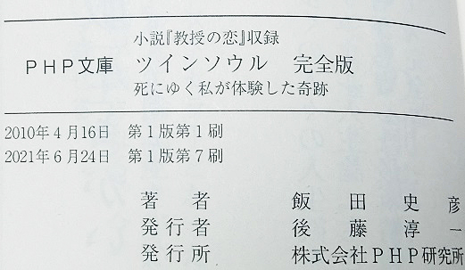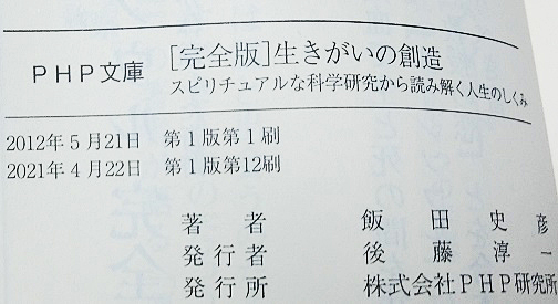 このたび、PHPからご連絡があり、文庫版の『完全版・生きがいの創造』、『ツインソウル・完全版』、『生きがいの創造・実践編』、『ソウルメイト』の4冊を、まとめて増刷いただけることになりました。また、文庫化されていない『これでいいのだ』についても、POD(プリント・オン・デマンド)という形で、購入希望者さんから申込があり次第、1冊から印刷・販売していただけることになりました。