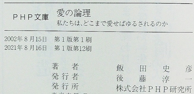 このたび、またもやPHPからご連絡があり、文庫版の『生きがいのマネジメント ~癒し合い、活かし合う生き方へ』と、『愛の論理 ~私たちは、どこまで愛せばゆるされるのか』の2冊についても、さらに増刷いただけることになりました。