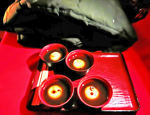 危険な「命がけの登山」までは絶対に決行しない、軟弱主義登山家(笑)を自称する私たち4名は、山荘のレストランで名物の「ソースかつ丼」を楽しみながら、お味噌汁のカップを振り上げて、好天の祝杯をあげたのでありました・・・オリンピックと同様に、登山についても、「安全・安心」こそが大切ですよね!!