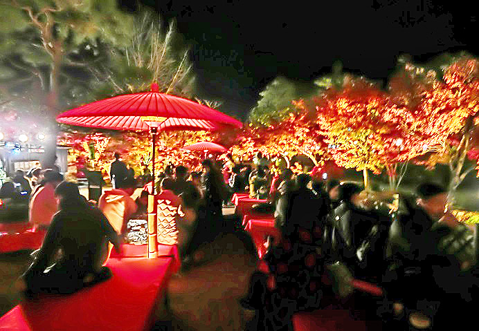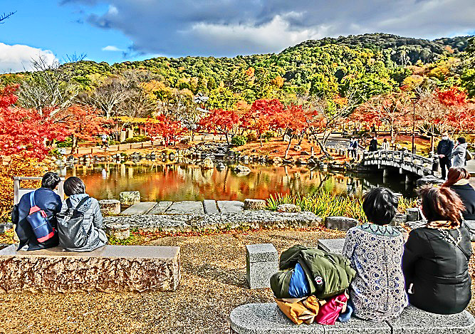 まず、1枚目は・・・池に反映する紅葉を眺めながら、その美しさに、参加者の皆様も、うっとり・・・頭を寄せ合うラブラブなカップルもいて、うらやましいですねぇ!!