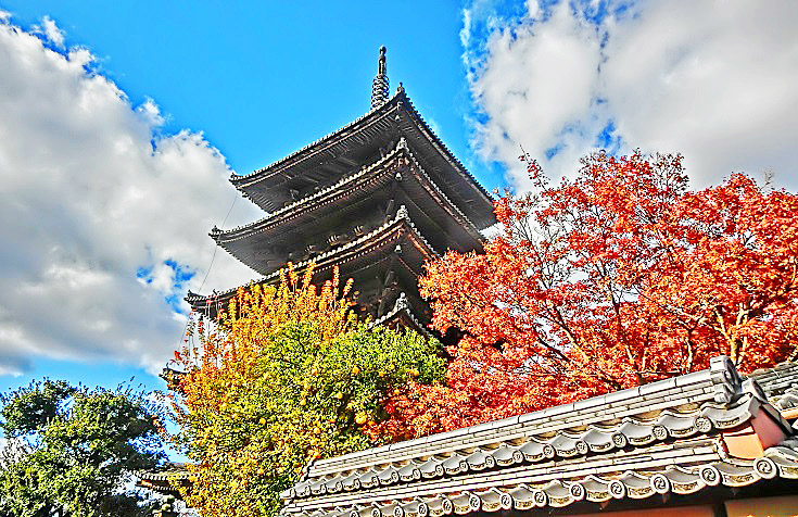 まずは、「八坂の塔」において、「モミジの向こうに見える五重塔」を、一心に撮影中の私・・・
