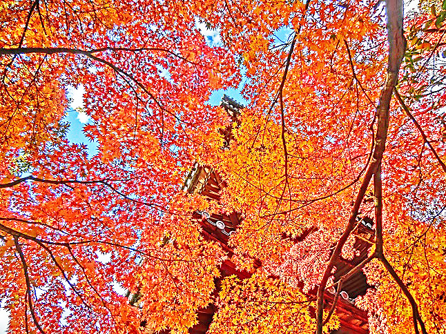 そのため、本日は、後半戦3日間の中から、前半戦(前回更新分)には掲載しなかった、「紅葉の名所:円山(まるやま)公園から東山連峰を見上げた光景」を、2枚、ご紹介しますね。