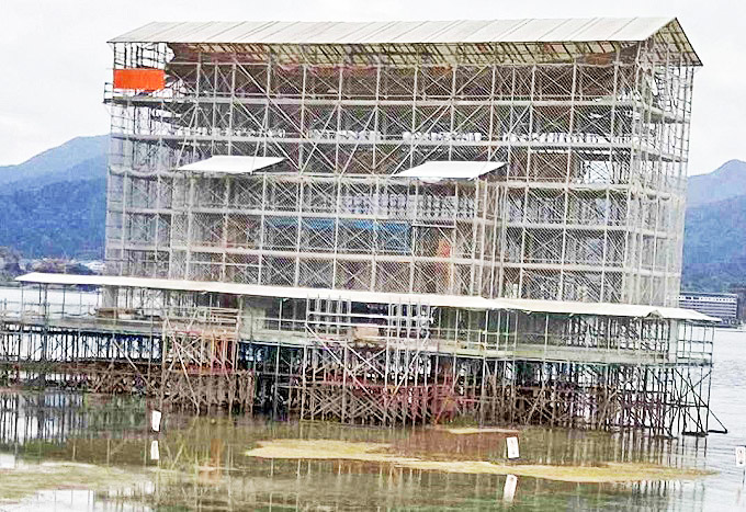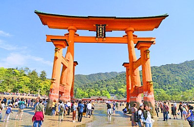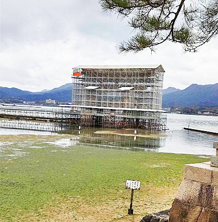 今、宮島(広島県)にある世界遺産・「厳島(いつくしま)神社」のシンボル(大鳥居)が、大修理中のため、完全に覆われてしまっているのです。