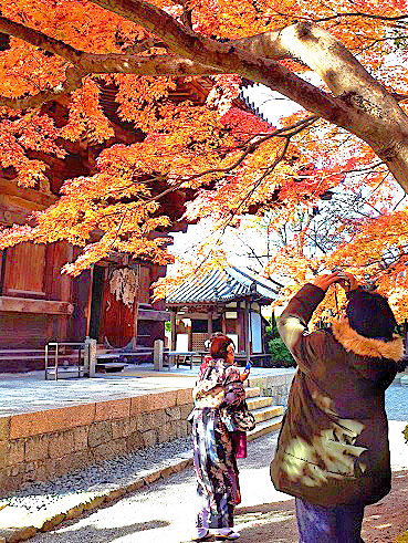 先日の更新でもレポートした、「紅葉の京都ミステリーツアー」において、「光の学校」スタッフたちが、たまたま(?)、私の後ろ姿を撮影してくれていましたので、お見せしますね。