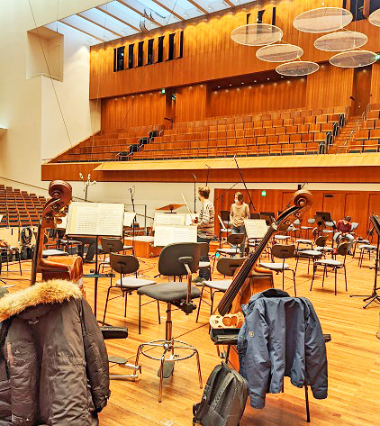 先日、例の*****の演奏会を、無事に終えることができました。自分では改善点も多々ありですが、ドイツ人の奏者から凄く褒めてもらえたので、ほっとしました。劇場ホールでの練習の時と、ゲネプロ(飯田注:本番同様に全員で行う直前練習)の時の写真を、お送りします。