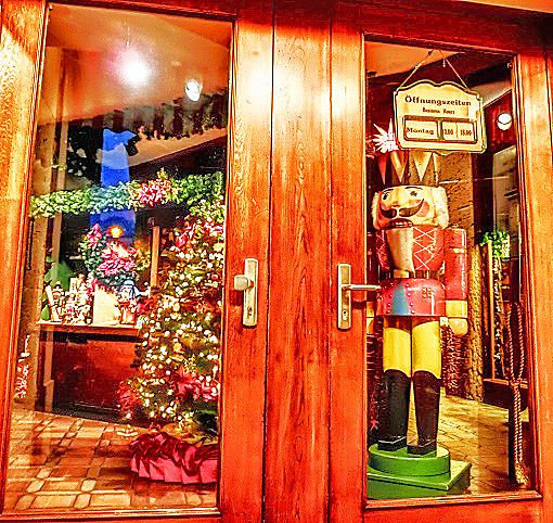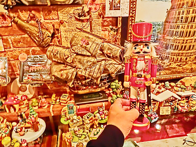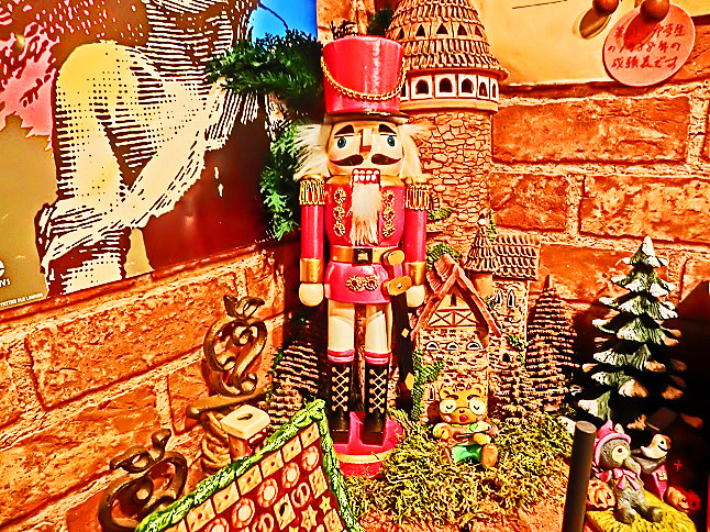 一年中がクリスマスというお店の入口で、このオジサン(くるみ割り人形)の大きな像が、「そこの者、よくぞ来られた!!」と、嬉しそうに出迎えてくださったような・・・