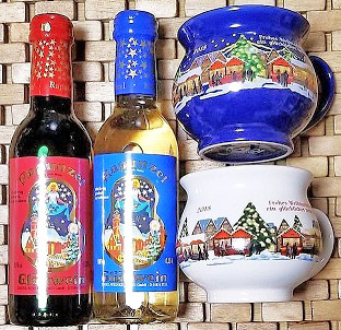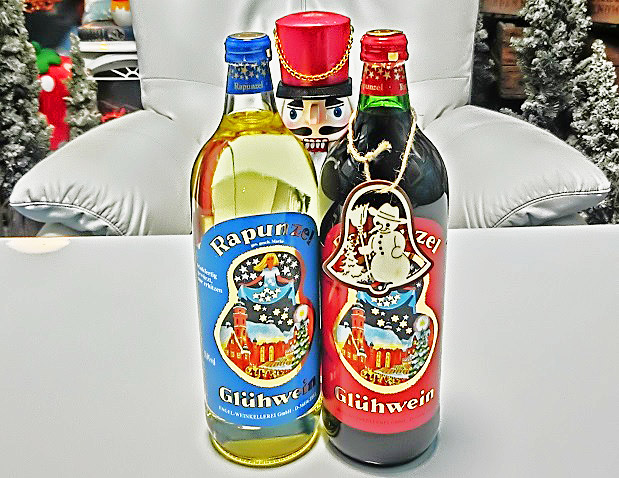 めでたく安住の地が決まったので、ドイツの「クリスマス・マーケット」に欠かせない、名物の「グリューワイン」を紅白で取り揃え、自分で祝杯を挙げている、実は大酒豪のオジサン・・・