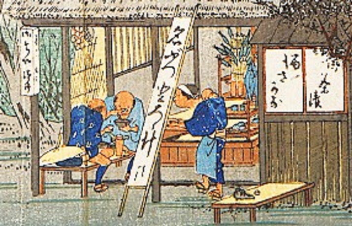 おや? ここに描かれているお店には、「名ぶつ とろろ汁」と書かれた看板が、目立つように立てられているではありませんか!!