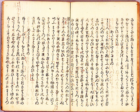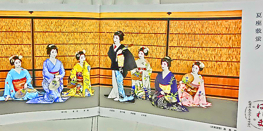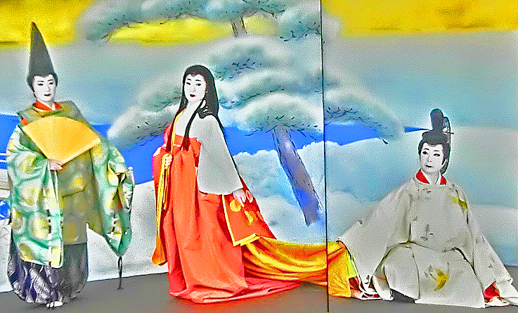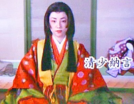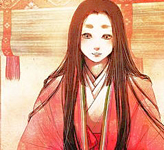 美容の女神「美御前」(うつくしごぜん)と、絶世の美女「小野小町」(おののこまち)という、京の都の2大美女たちに挟まれてしまい、目を見開きながら鼻血を出している、純情なオジサン・・・