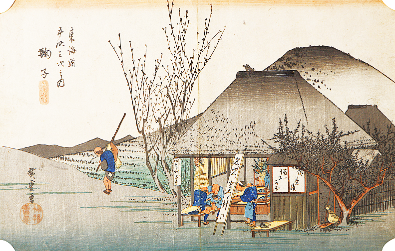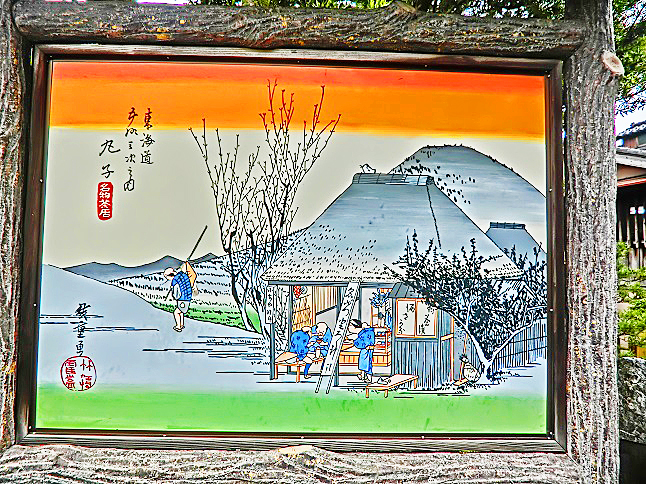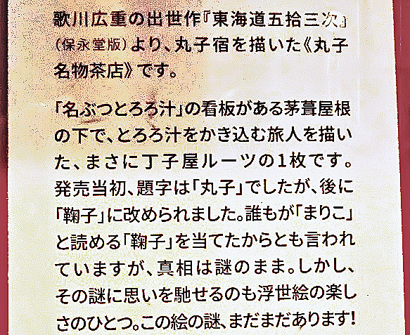 そう、この丸子(鞠子)宿の光景を、かの有名な浮世絵師「歌川広重」(うたがわひろしげ)は、次のように、叙情豊かに描写していますが・・・