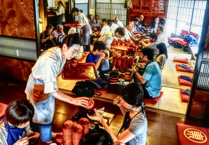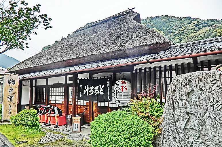 そして、江戸時代から、そのままの場所で現在でも営業なさっているのが、こちらの「丁子屋」(ちょうじや)さん・・・まさに、広重が浮世絵で活写した光景を、そのまま同じ場所で拝見できるというわけですから、なんと幸せなことでしょう。これぞ、リアル・タイムトラベル体験!!