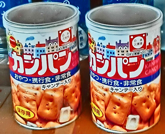 さらに、万が一の事態に備えて、「カンパン」(乾燥したパン = 非常食)や、非常用の飲料水も、置いてありましたよ。(先日は、これを活用することなく、無事に業務を終えることができたので、ほっと胸をなで下ろしましたが・・・)