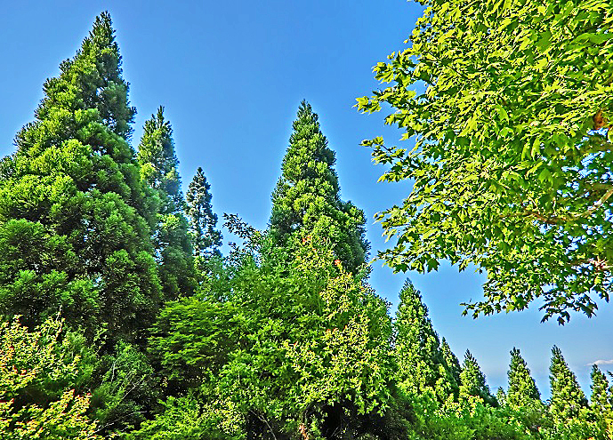 スタイリッシュな針葉樹たちと、穏やかで気の良さそうな広葉樹たちが、まるで微笑むかのようなコラボレーションを見せながら、我々を迎えてくれますよ。