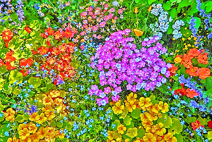 ほら、足元では、「ねえ、見て見て!!」と、色とりどりの花々たちが、幸せいっぱいに、咲き誇っていますよ。思わず、「みんな、楽しそうだねぇ」と、にっこりしますよね・・・