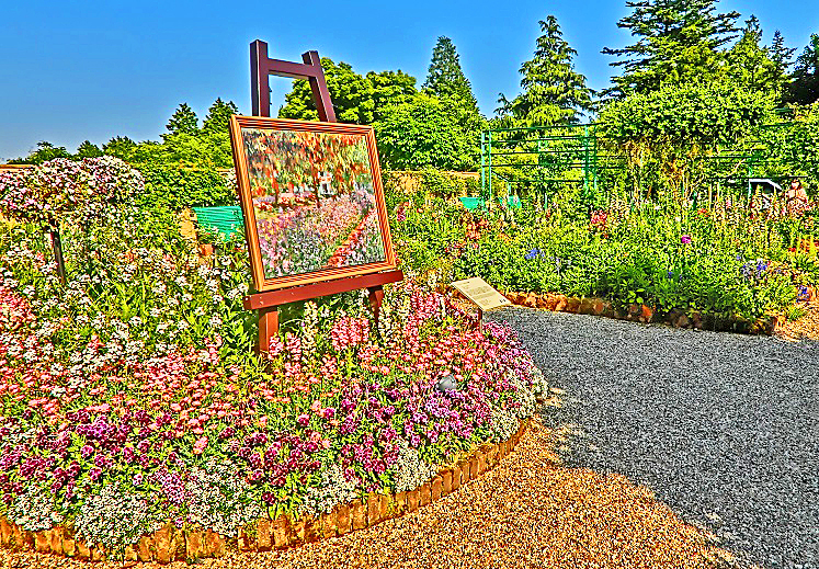 ようやく、たどり着いたのが、ここ・・・画家モネの自宅と前庭を、なぜか比叡山の山頂に再現したという、ガーデンミュージアムの中心部です。確かに、「ようこそフランスへ!!」と歓迎されたら、「ああ、そうだ、ここはフランスだった!!」と、カン違いしてしまいそうなムードですよねぇ(笑)。