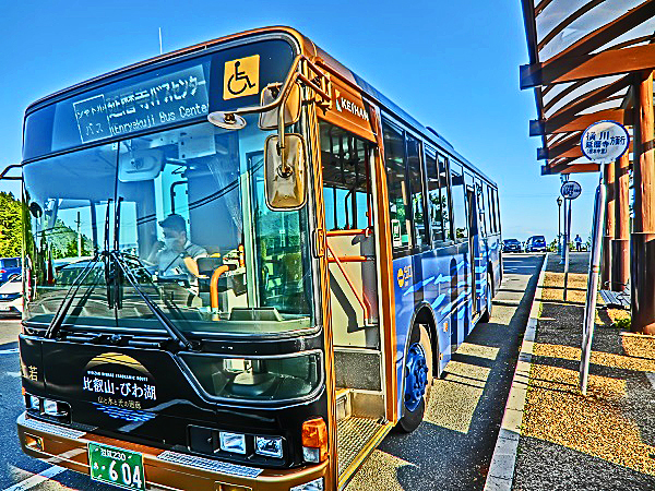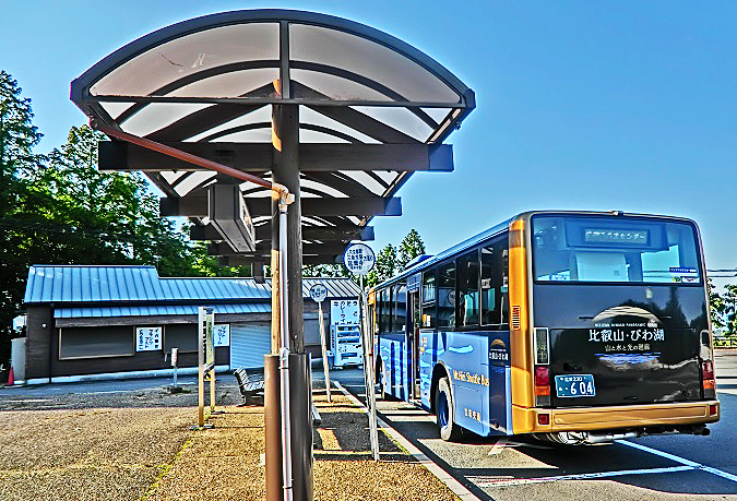 山頂のバス停には似合わないほどの(失礼)、豪華で綺麗なバスですよねぇ・・・