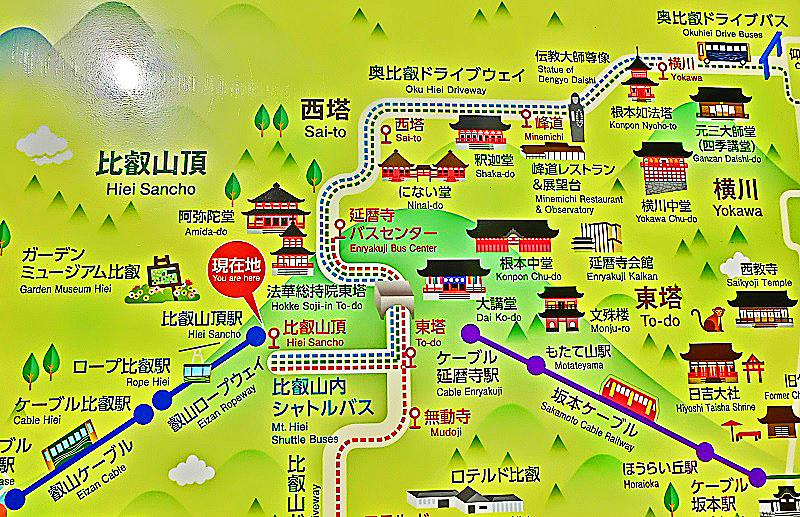 比叡山は、バス、ロープウェイ、ケーブルカーなど、さまざまな交通手段で訪れることができますから、実は、とても便利な周遊地なのです・・・たとえば、京都側から乗る「叡山ケーブル」では、恐怖度MAXの「日本一の急こう配」を体験できますし、反対側にある「坂本ケーブル」は、「日本一距離が長い(乗車時間が長い)ケーブルカー」なんですよ。