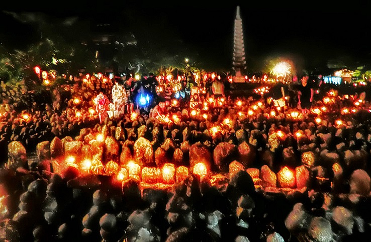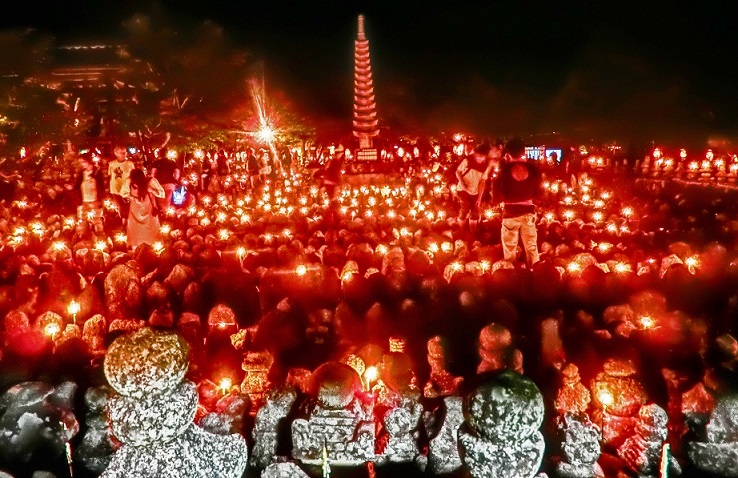 大文字山の山腹に見えるのは、「大文字の送り火」では?