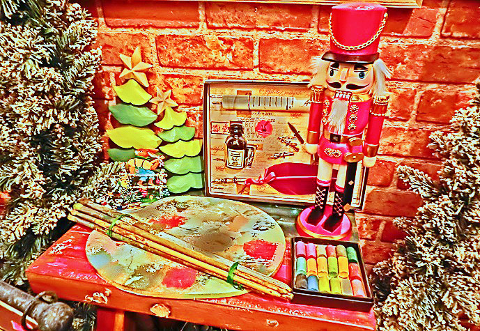 ベルギーに実在した画家さんが生前に活用していた、絵の具パレットの実物(アンティーク)を発見して、画家の魂に語りかけている、心優しきオジサン・・・