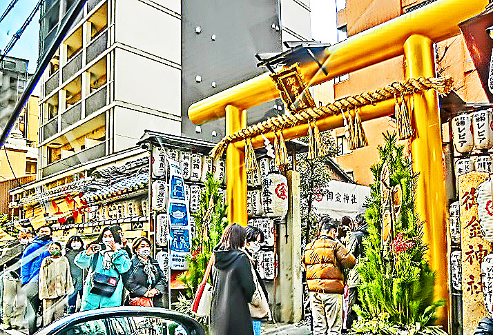 なんと、そこには、「御金神社」(みかねじんじゃ)のシンボル、黄金の鳥居が!!