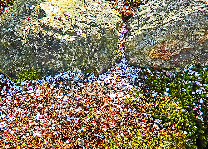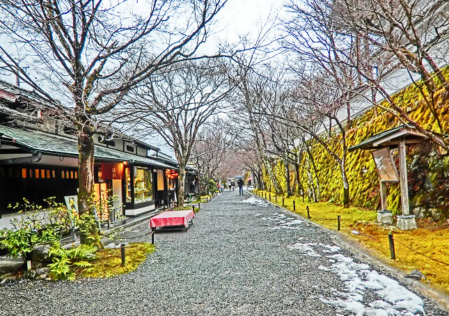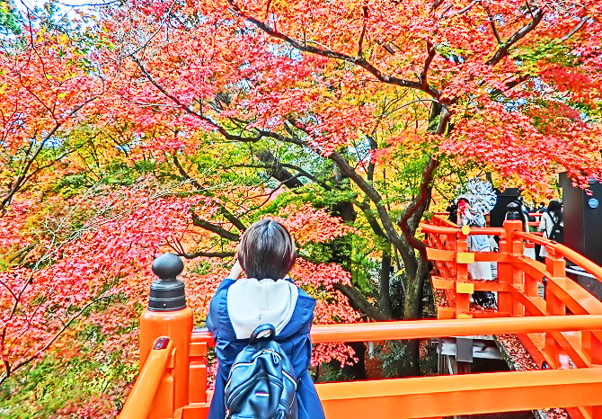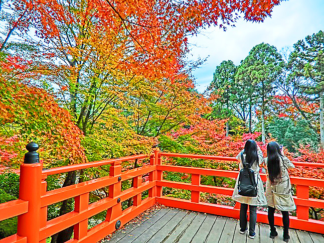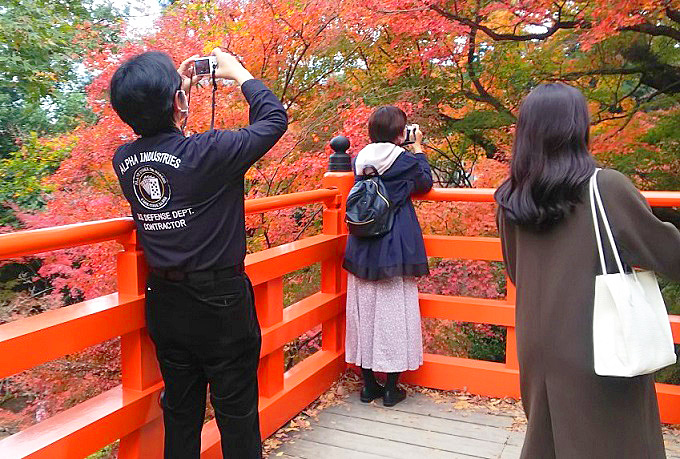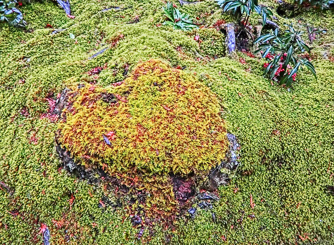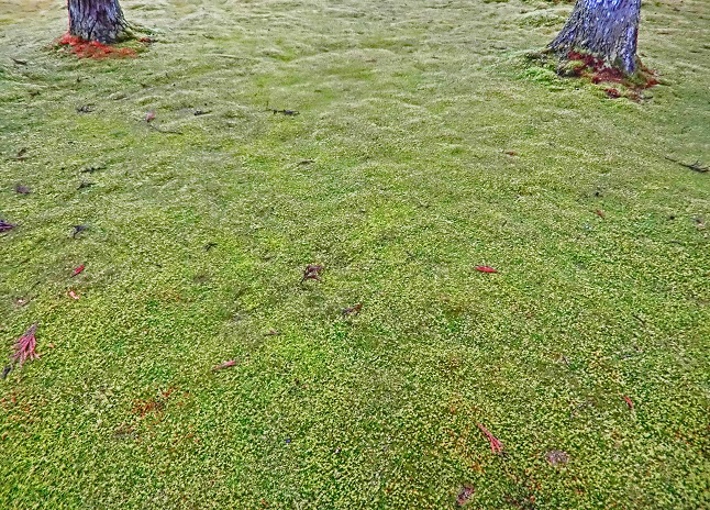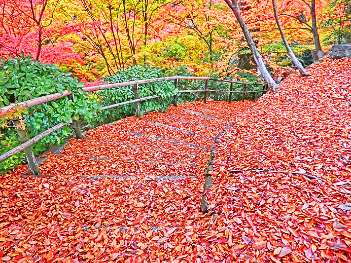 いわゆる「散りもみじ」「敷きもみじ」も、これだけ降り積もると、こんなに美しいんですよ・・・紅葉の最盛期を過ぎ、大勢の観光客が去ってから、この光景を見に行って楽しむのが、京都人の習慣なのです。