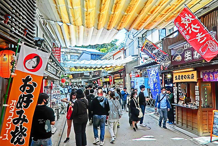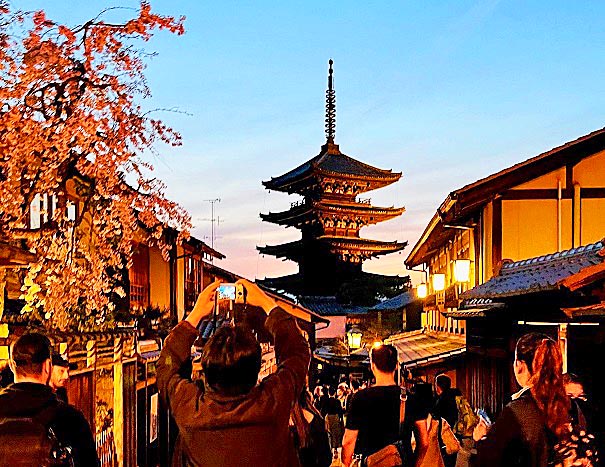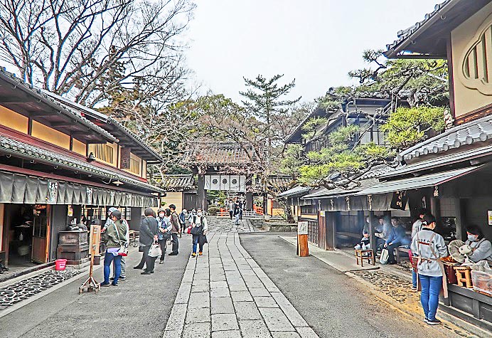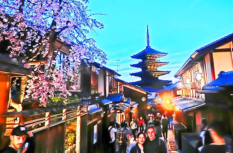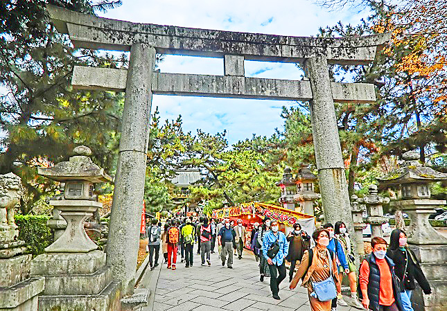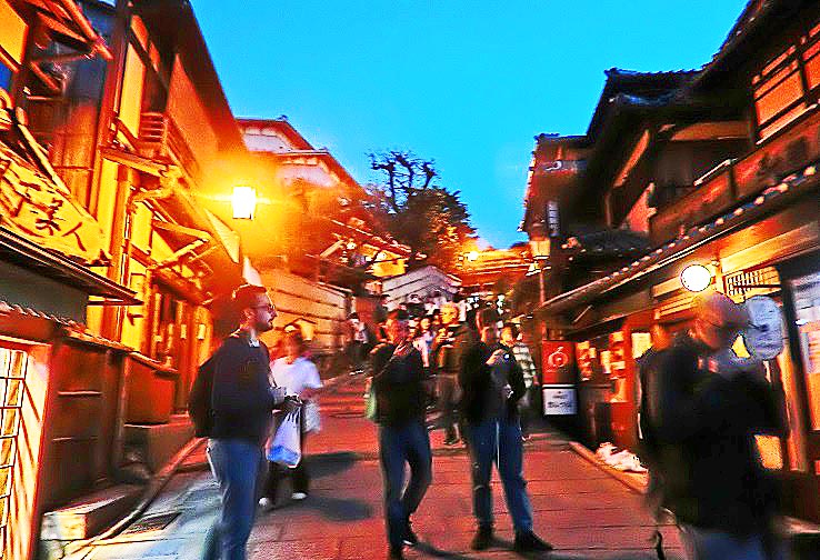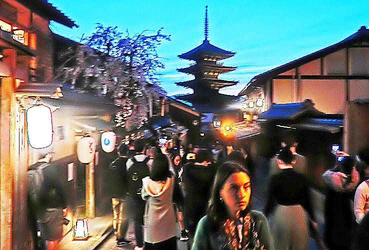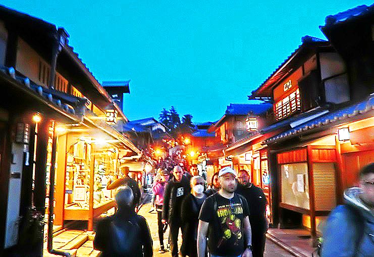 祇園の料亭街を抜けて、八坂神社へ・・・この石段も、ウイルス問題の発生前に比べると、5分の1くらいの人出ですが、それでも、誰もいなかった2年前に比べれば、観光客・参拝者が戻って来た印象ですね。