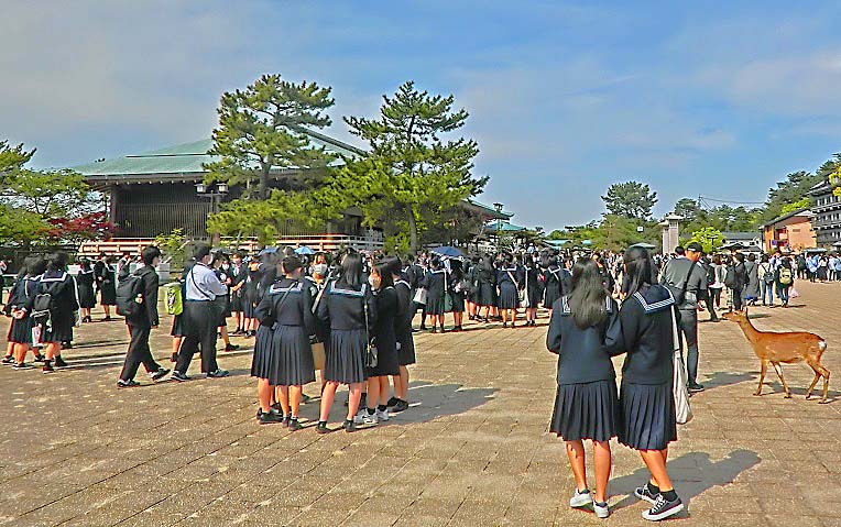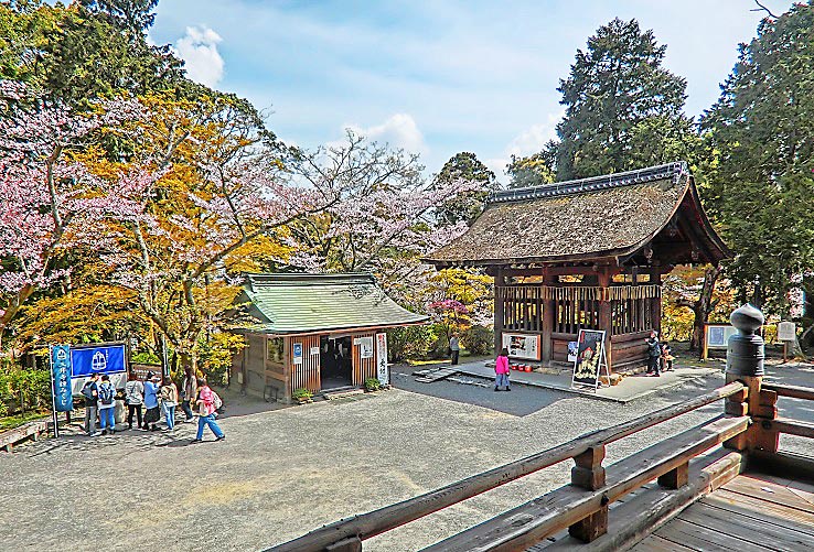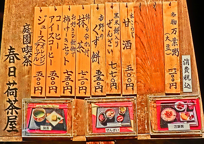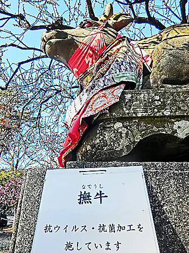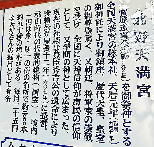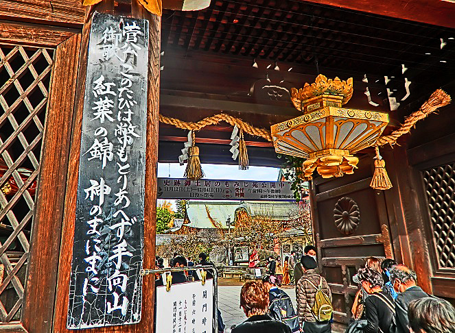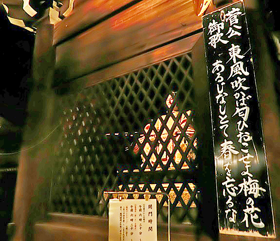 門の左手には、学問の神様・菅原道真(すがわらのみちざね)公が詠(よ)んだとされる、「このたびは 幣(ぬさ)もとりあへず手向山 紅葉の錦 神のまにまに」という名歌が、誇らしげに飾られていますよ。(この歌の意味につきましては、かなり複雑な長文の解説を必要としますので、ご興味をお持ちの御方は、ネットで調べてみてくださいね)