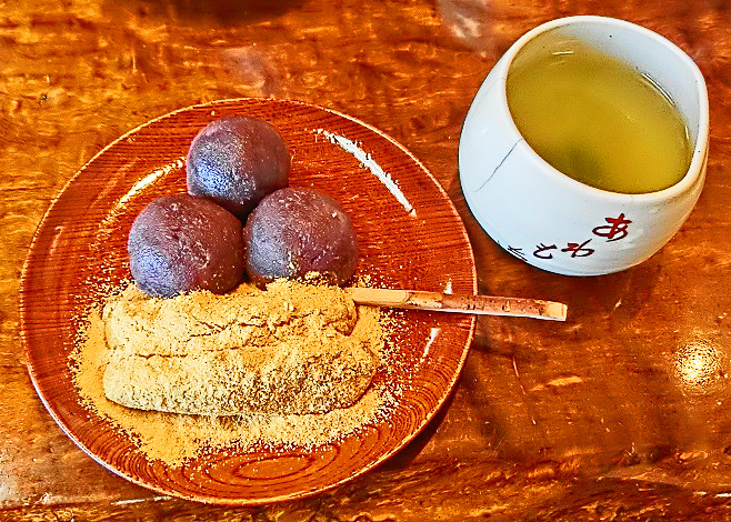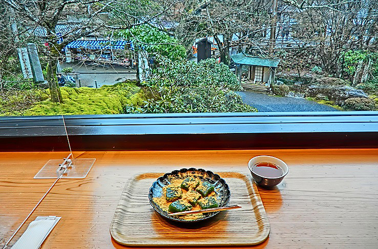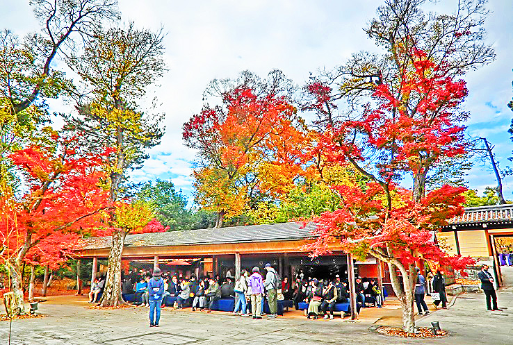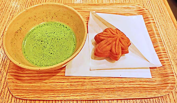 素晴らしい紅葉を満喫したら、お休み処で、お茶とお菓子をいただきましょうか・・・お茶もお菓子も、入苑料に含まれていますから、ご安心を。