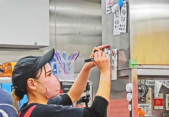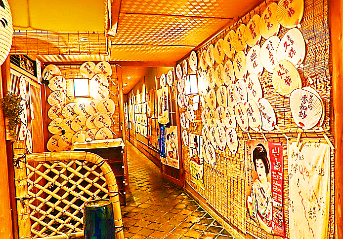 目立つ場所に飾られている、たくさんのウチワには、この店で呼んだことのある(呼ぶことができる)、舞妓・芸子さんたちの名前が・・・